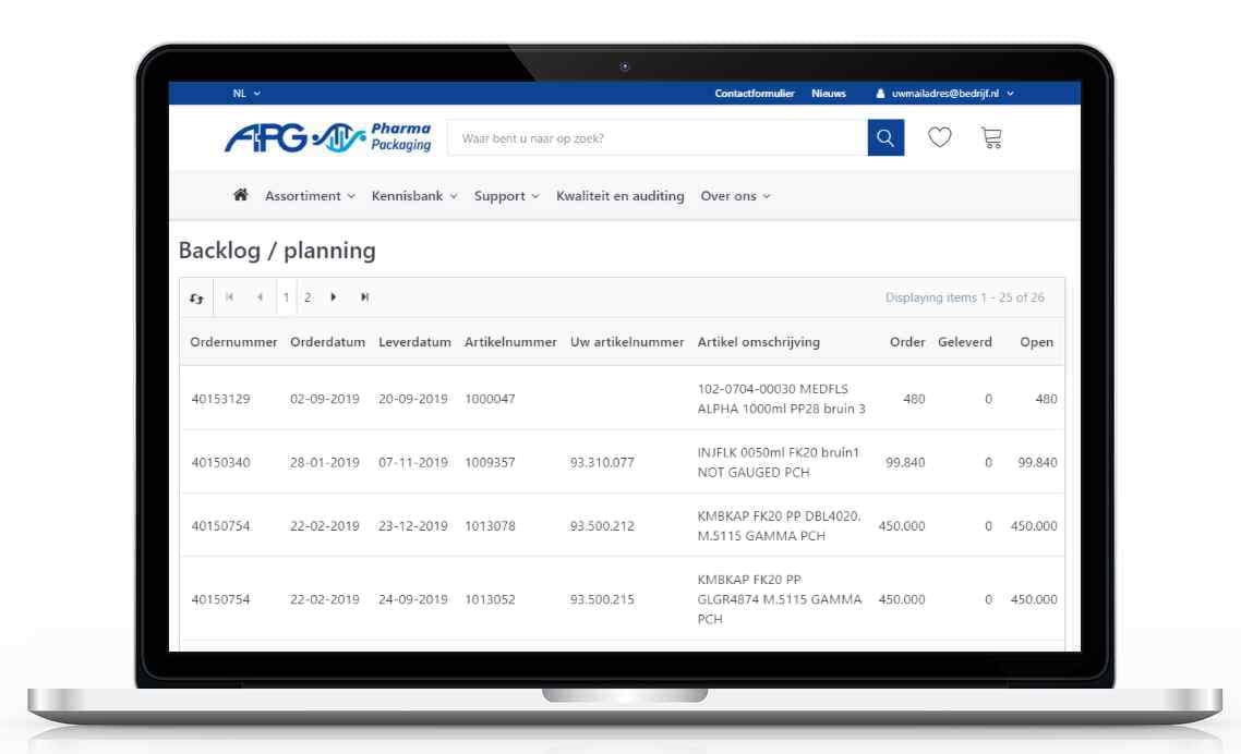 • Inzicht in uw achterstandsplanning, uw huidige voorraad, uw leveringsplan en uw afroepcontracten